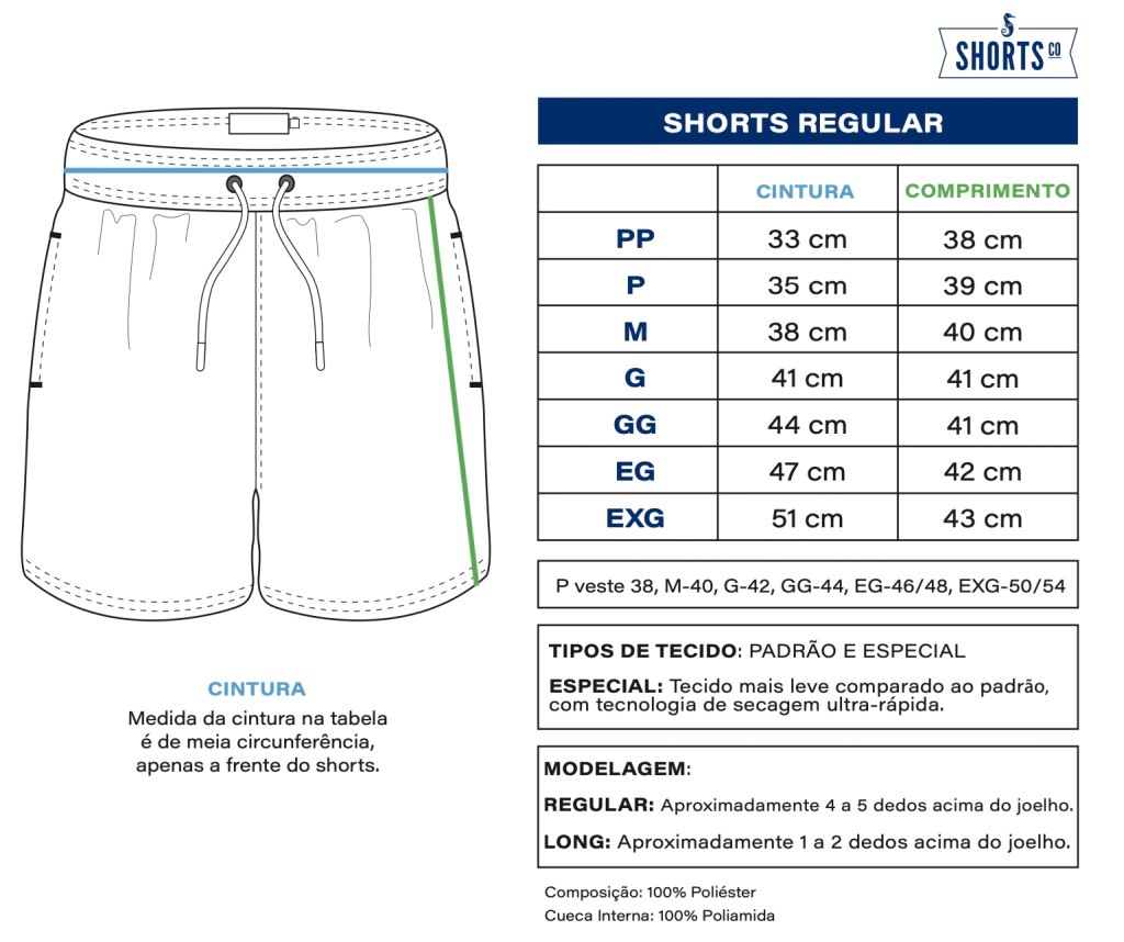 Composição: 92% Poliéster - 8% Elastano